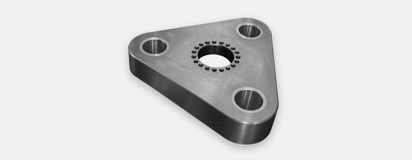 Geumpyeong Industry’s triangular flange base is designed to securely support and fasten various industrial shafts and bearings.